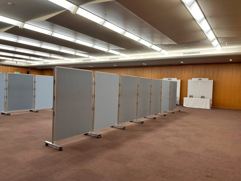 コングレスセンター3Fロビーのポスター展示用パネルの設営・2~5階までの各会議室で行われたシンポジウムの進行・運営管理を担当いたしました。