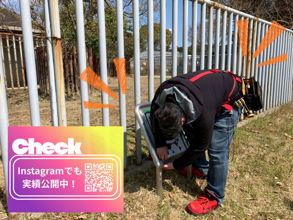 今回は設置だけでなく、看板土台の磨き・清掃もあわせて行いました。